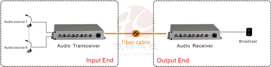 This digital Audio optical transceiver adopts digital Audio encoding and optical fiber transmission technology. 8 channel Audio, and serial data, on the single-core optical fiber. Rack installation or desktop installation can be optional.