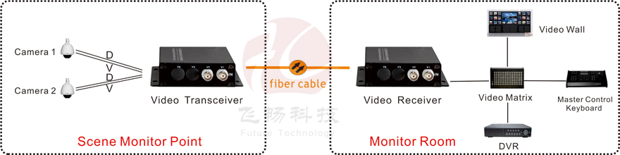 This digital video optical transceiver adopts digital video encoding and gigabit optical fiber transmission technology. The multi-channel single-direction bi-direction audio, video, data, telephone, Ethernet and switch real-time synchronization, no-distortion and high quality transmission is on the single-core or dual-core optical fiber. Complete digital video non-compression transmission technology, with video and data condition indicator, can monitor the system normal operation. It uses modular design, the user can flexibly select or customize configuration based on the scene occasion. Rack installation or desktop installation can be optional. This product is made up of optical transmitter and receiver. It can transmit 2Channel forward direction Video and 1Channel reverse direction RS485 data.