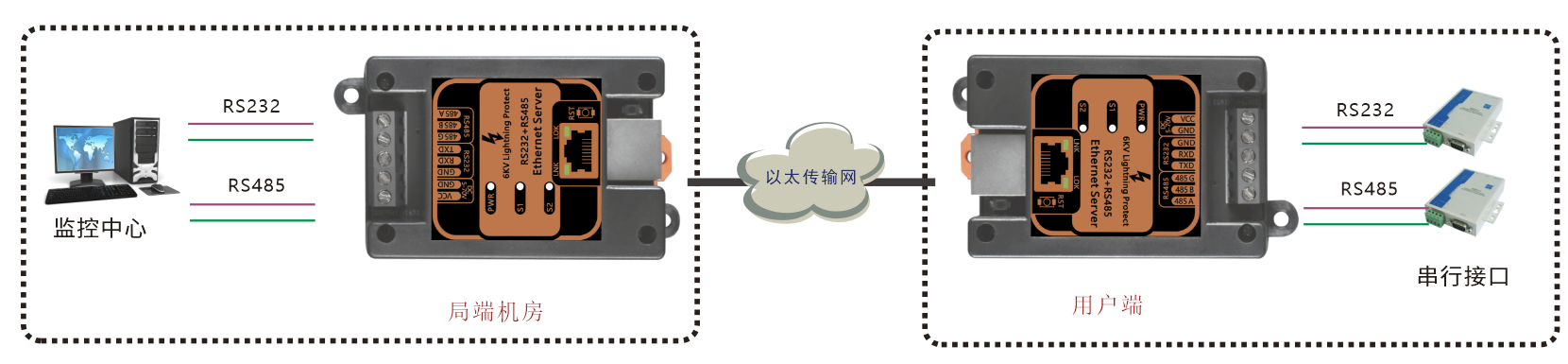 | 業(yè)務(wù)端口描述 | 1個RS485串行接口,1個RS232串行接口,1路百兆以太網(wǎng)電口 |