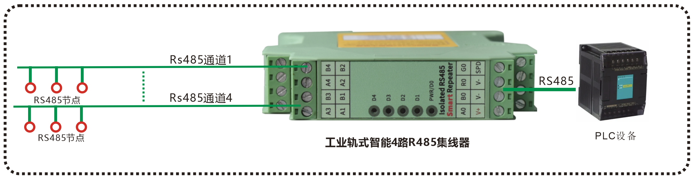 | 產品功能描述 | 智能工業(yè)軌式 4路RS485集線器 |