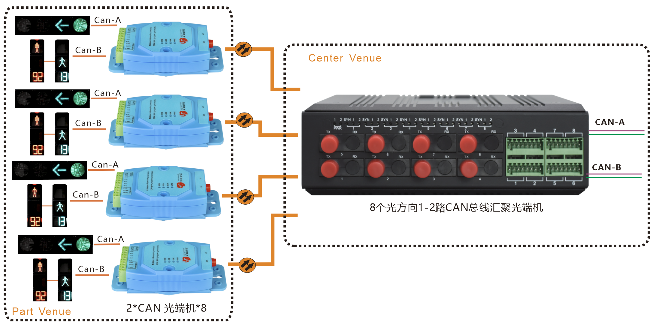 | 產品功能描述 | 8路匯聚光口1-2路CAN總線光端機 |