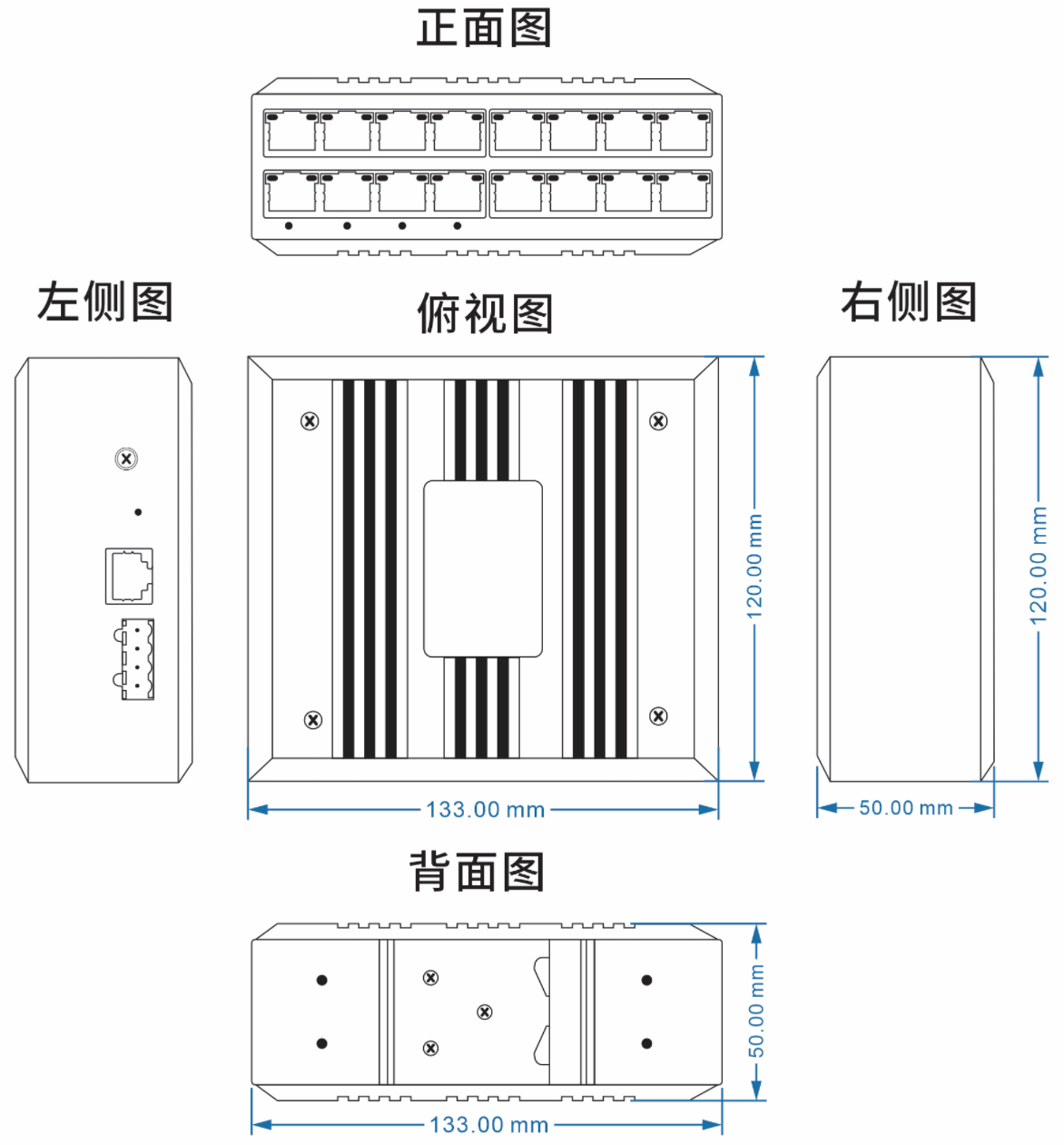 (110mm(長) x 86mm(寬) x 50mm(高) 安裝方式:導(dǎo)軌安裝、壁掛式安裝 |
