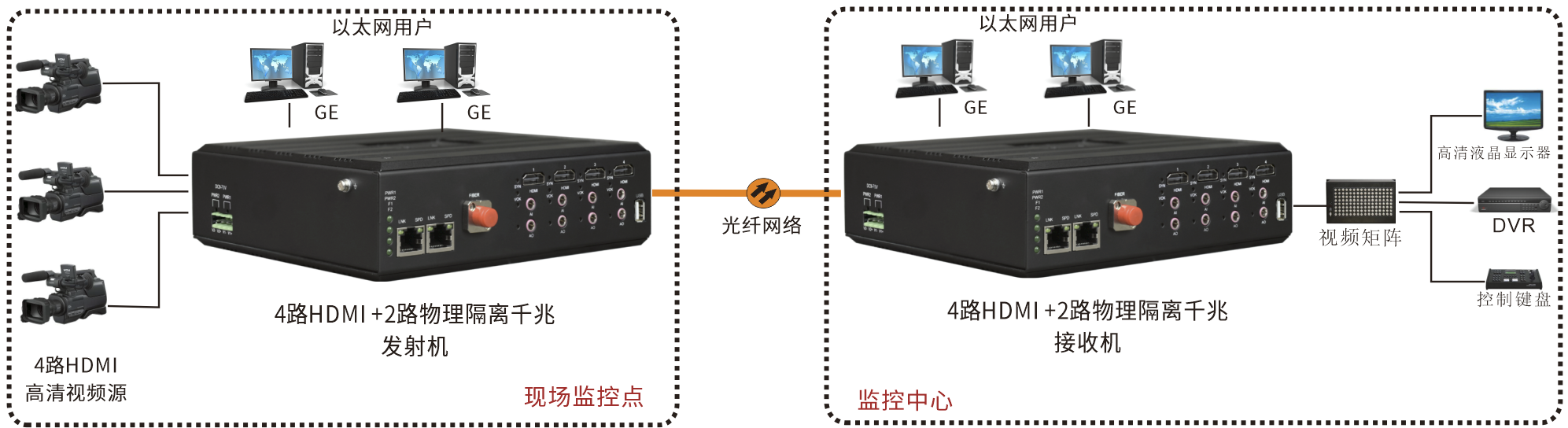 | 產(chǎn)品功能描述 | 在光纖上同時傳送4路2K HDMI 信號 + 2路物理隔離千兆以太網(wǎng)+1路USB |